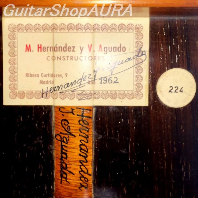 Hernández y Aguado is one of Spain’s most celebrated classical guitar brands, founded by Santiago Manuel Hernández (1895–1975) and Victoriano Aguado Rodríguez (1897–1972). In this partnership, Hernández focused on crafting the guitar bodies while Aguado handled finishing, headstock detailing, and overall supervision.
