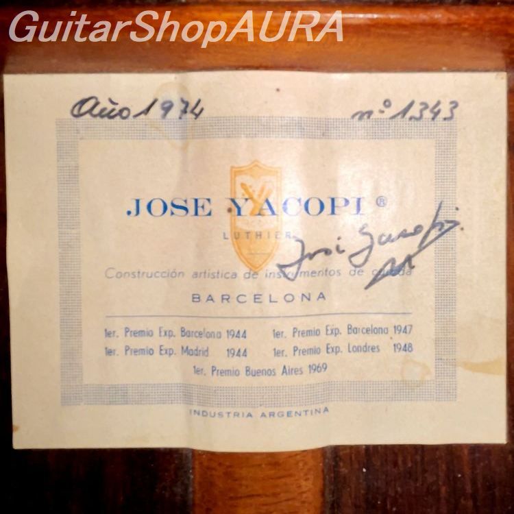 José Yacopi (1916–2006) was born in Vitoria, Spain, and became one of the most distinctive and influential classical guitar makers of the 20th century. Trained in the workshop of his father, Gamaliel Yacopi, he built his first guitar at the age of 18. In 1949, the Yacopi family relocated to San Fernando, a suburb of Buenos Aires, Argentina, where José would continue to build guitars for the rest of his life.