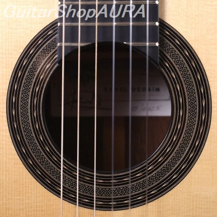 Dedain explored modern guitars with lattice bracing and double tops, eventually focusing on Spanish masters such as Torres, Arias, Garcia, Simplicio, and the Manuel Ramirez workshop. Today, he produces meticulous replica models, “Inspired” models (reconstructed with his own creative input), and original designs. His craftsmanship combines extraordinary precision with faithful reproduction of original essence, exceptional playability, and perfect acoustics, earning a reputation comparable to his mentor Verheyen.