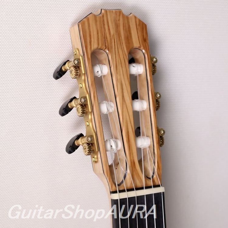 The neck, made of Tasmanian Oak (another Australian native wood), is a bolt-on design. Scale length is 640 mm, with a thin D-shaped profile that offers excellent playability. The string height is set at 2.8 mm (1st string) and 3.9 mm (6th string) at the 12th fret, with 2.0 mm of saddle reserve. Dual soundports (18 mm diameter) are located on each side of the heel, enhancing projection toward the player.
