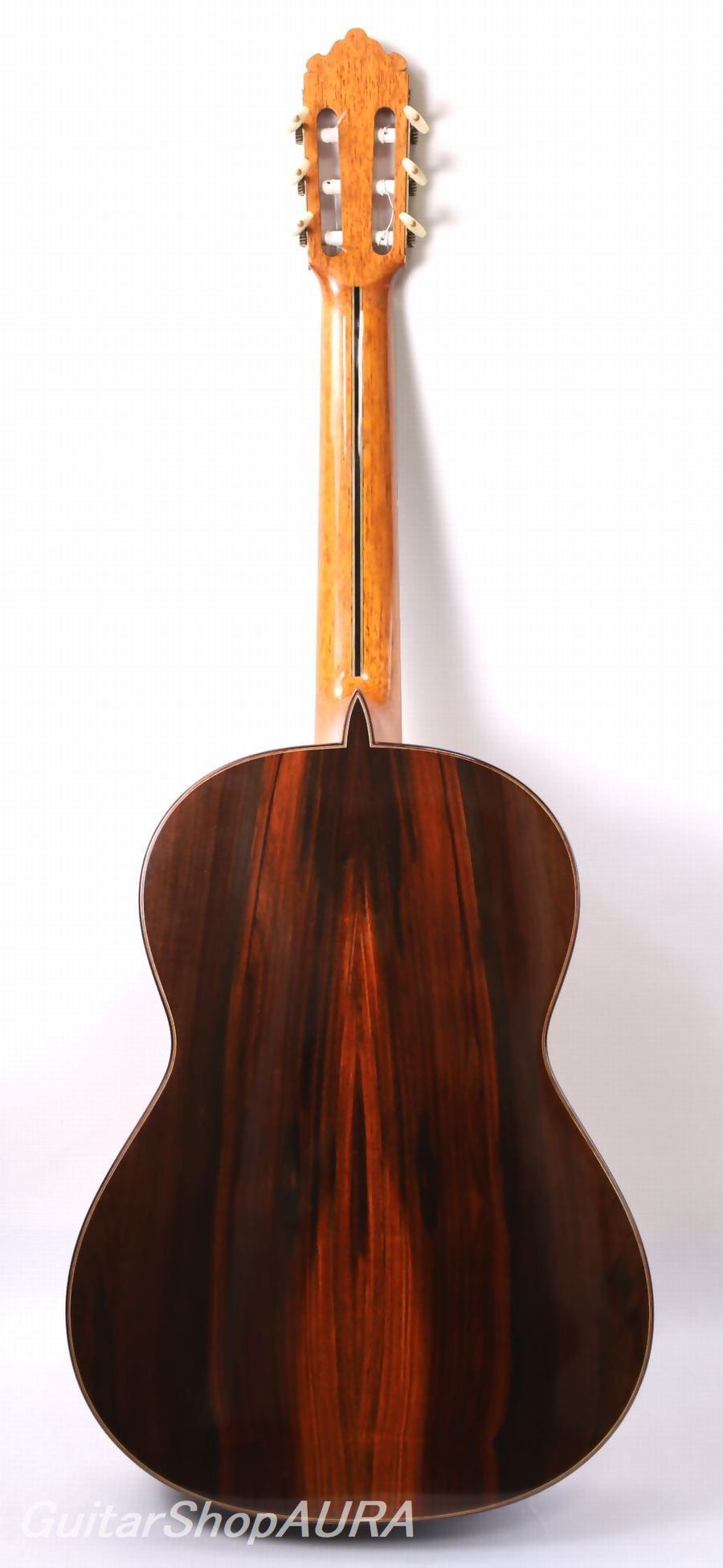 This 1998 Maestro model by M. Tezanos Perez (No.221) exemplifies the Madrid school of guitar making. The guitar delivers a naturally balanced sound from resonant bass to clear treble, with rich, romantic tonal colors that can express subtle nuance or dramatic intensity while maintaining elegance. Its responsiveness and playability are exceptional: notes speak immediately, and phrases stop cleanly, giving the performer full control over musical expression.