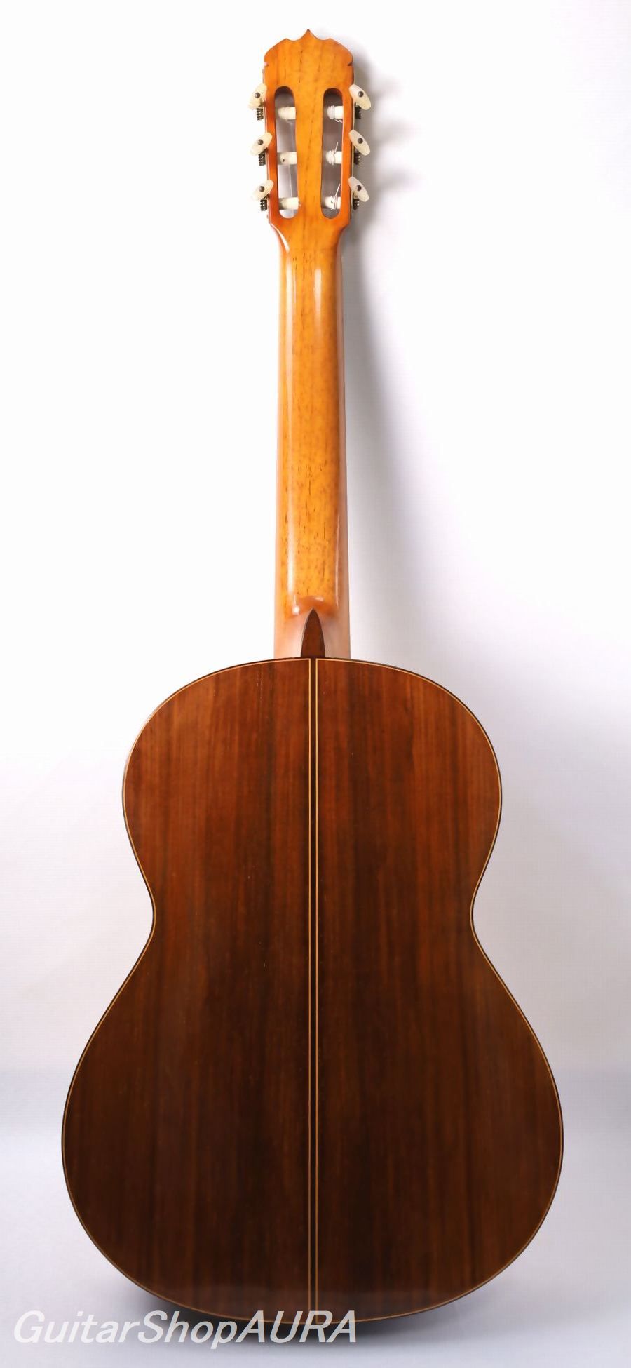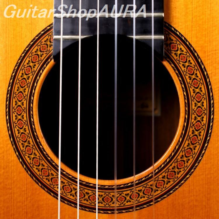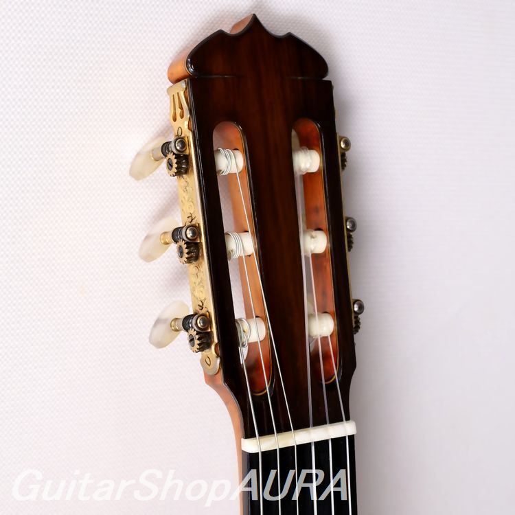 The neck remains in good condition, with slight fret wear in the lower positions that does not affect playability. The neck has a relatively flat D-shaped profile, and the fingerboard features a slightly more pronounced radius than typical classical guitars, with a subtle slope toward the treble side for improved playability.