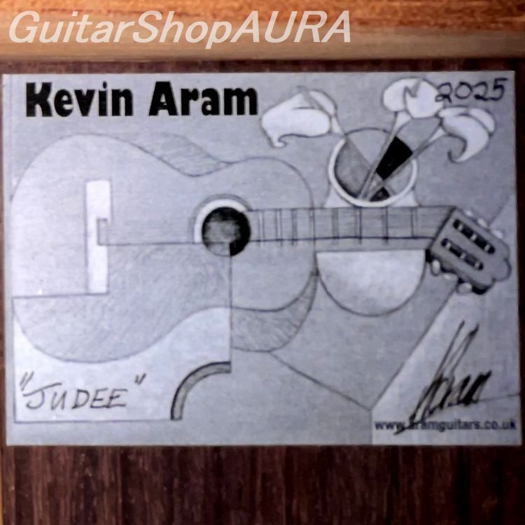This 2025 Kevin Aram "JUDEE" model, made in tribute to the Julian Bream style, is a nearly unplayed, used instrument in mint condition. It stands as a remarkable example of Aram’s mature work and commitment to traditional design rooted in the Torres school.