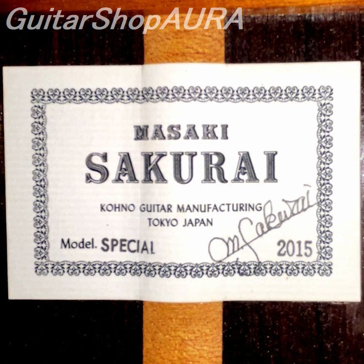 This is a 2015 Sakurai Masaki “Special” model (F1027A), a mid-range guitar in his lineup, positioned just below the Maestro-RF and PC models. The “Special” is now discontinued, making this used instrument a rare find in excellent condition.