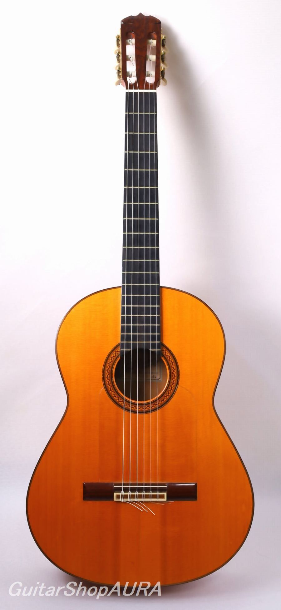 In 1964, Ramírez introduced the Model 1A as the brand’s flagship instrument. This model featured several groundbreaking specifications: cedar replaced spruce for the soundboard, the body depth was increased, the sides were constructed with an inner cypress laminate (double-wall structure), the scale length was extended to 664 mm (instead of the standard 650 mm), and the traditional shellac finish was replaced with a urea resin finish to greatly enhance durability. These innovations produced the distinctive sweet, glossy tone known as the “Ramírez sound,” and together with its striking red-tinted appearance, the 1A achieved unprecedented popularity in guitar history.