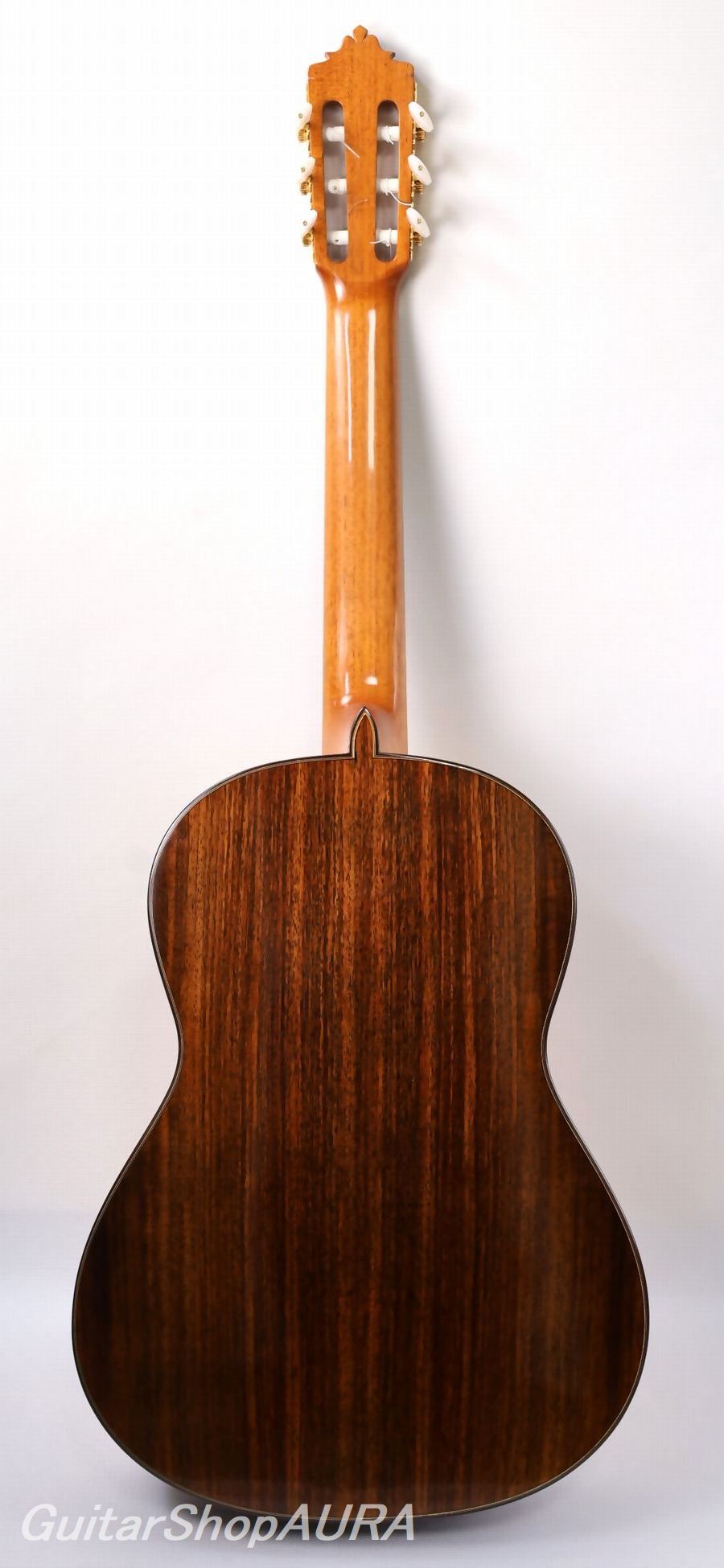 This is a 2012 flamenco negra model. The top is made of spruce, while the back and sides are Indian rosewood. Typical of flamenco negra guitars, it offers a deep, rich tonal character combined with crisp articulation, resulting in a very satisfying and comfortable playing experience.